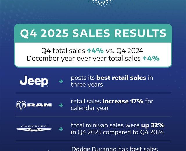 Second consecutive quarter of total sales increases in 2025 December total sales increase 4% year over year Market share grew to 8.2%, up from 7.6% in December 2024 Jeep® posts its best December retail sales in three years and delivers year-over-year total sales growth in the U.S., based on full calendar-year results Ram brand retail